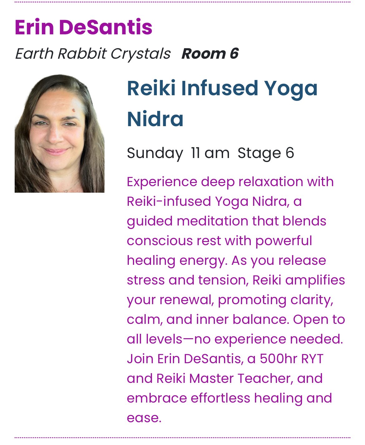 Back to All Events Reiki Infused Yoga Nidra Sunday, April 13, 2025 11:00 AM 12:00 PM Sharonville Convention Center 11355 Chester Road Glendale, OH, 45246 United States (map) Google Calendar ICS I am offering a relaxing yoga nidra combined with grounding reiki energy to allow for such a field of ease & peace. Please join me in Room 6 to experience pure rest & healing with all the tools you already have deep inside.